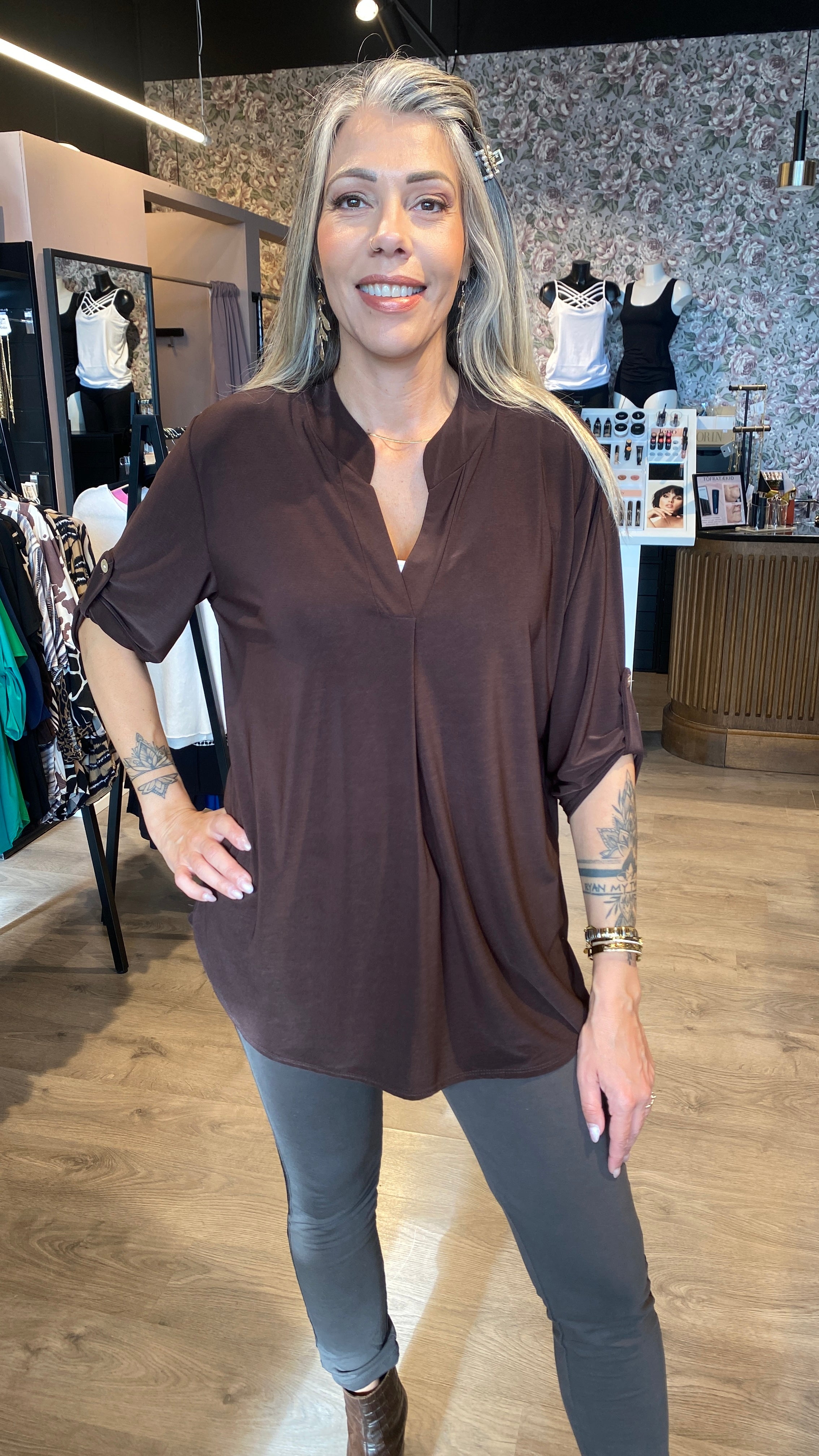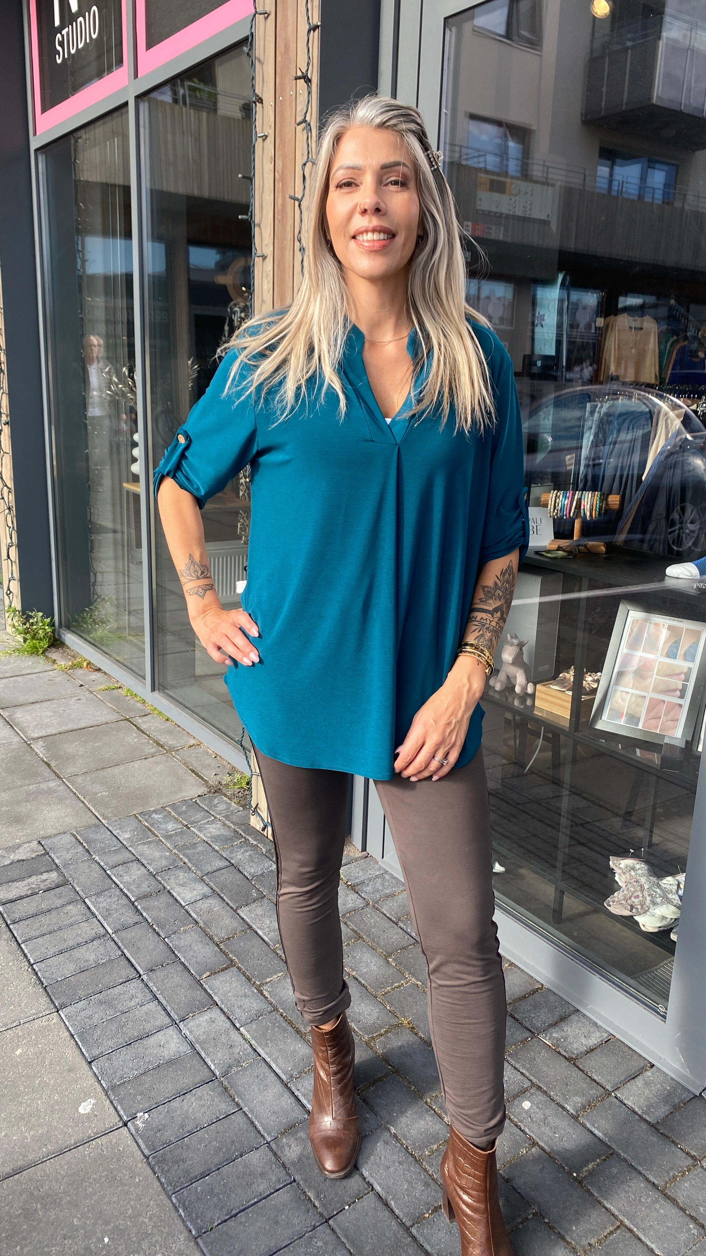 Vinsæli Mæju bolurinn, ein stærð sem passar frá 38 - 48. Ótrúlega þægilegir bolir sem klæðir flestar konur, beint snið og kínakragi.
