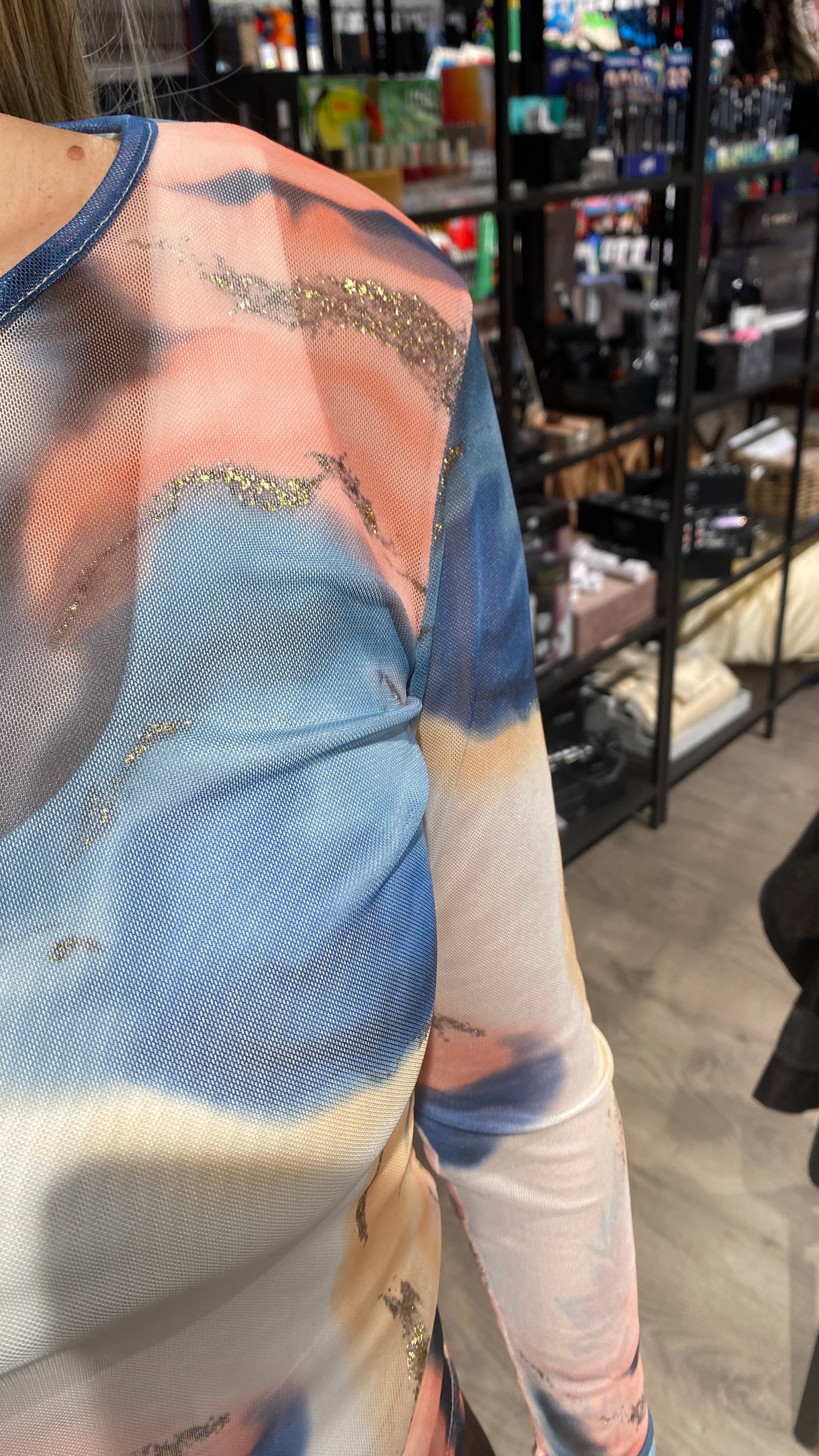 Sparilegur marglita mesh bolur með smá gylltu í. Mjög fallegur undir jakkann.