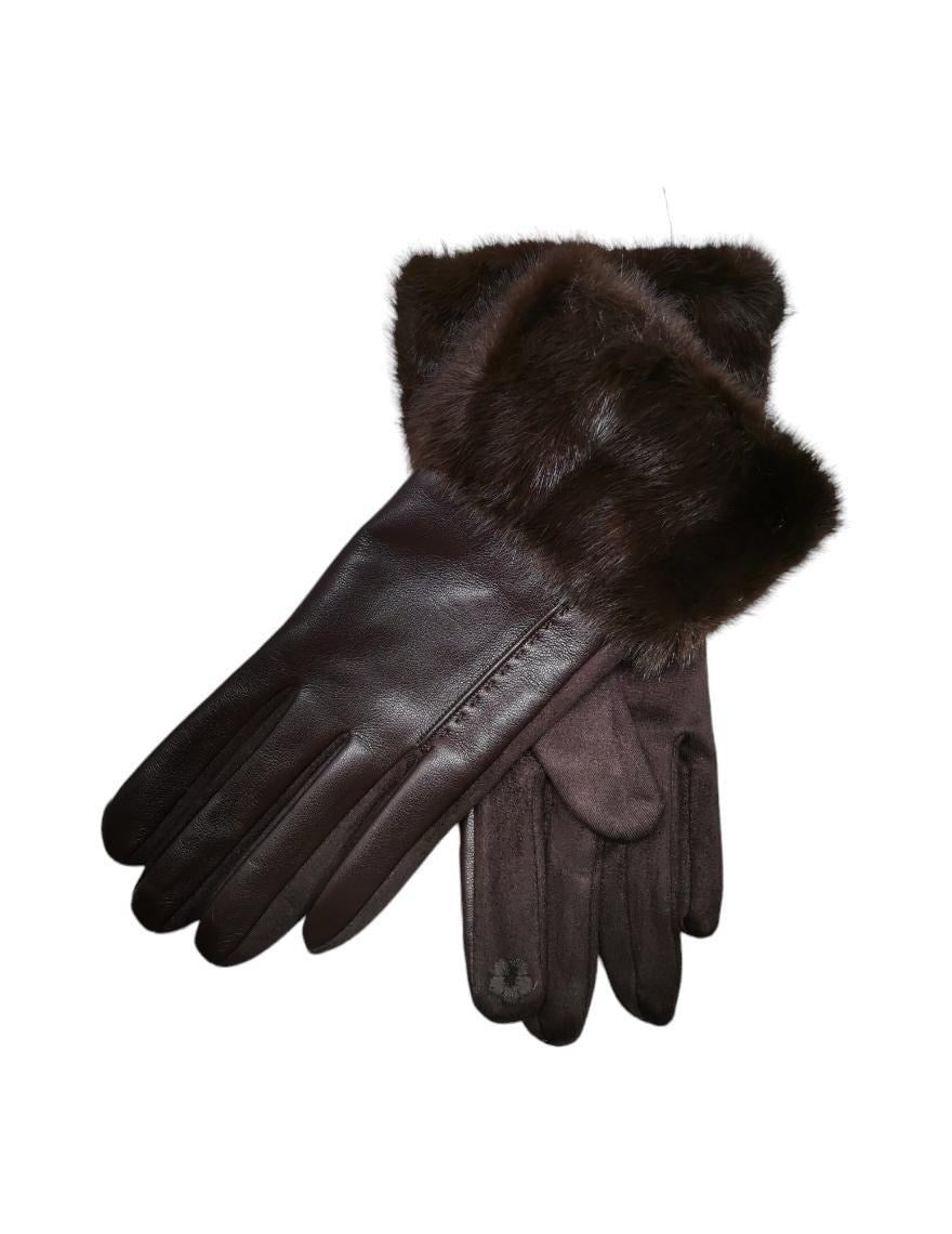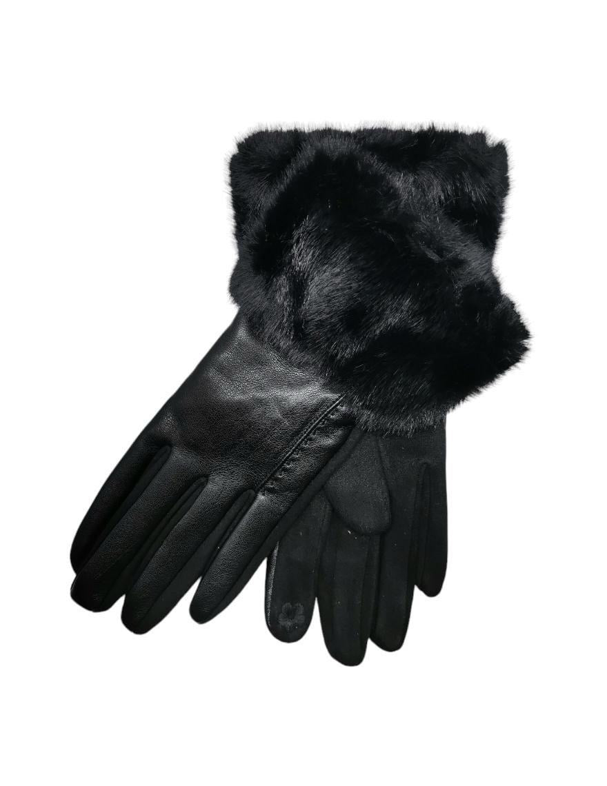 Fallegir og smart vegan leður hanskar með rúskinni lófa megin og loðkraga að ofan. Mjög mjúkir og þæginlegir og teygjast ágætlega.