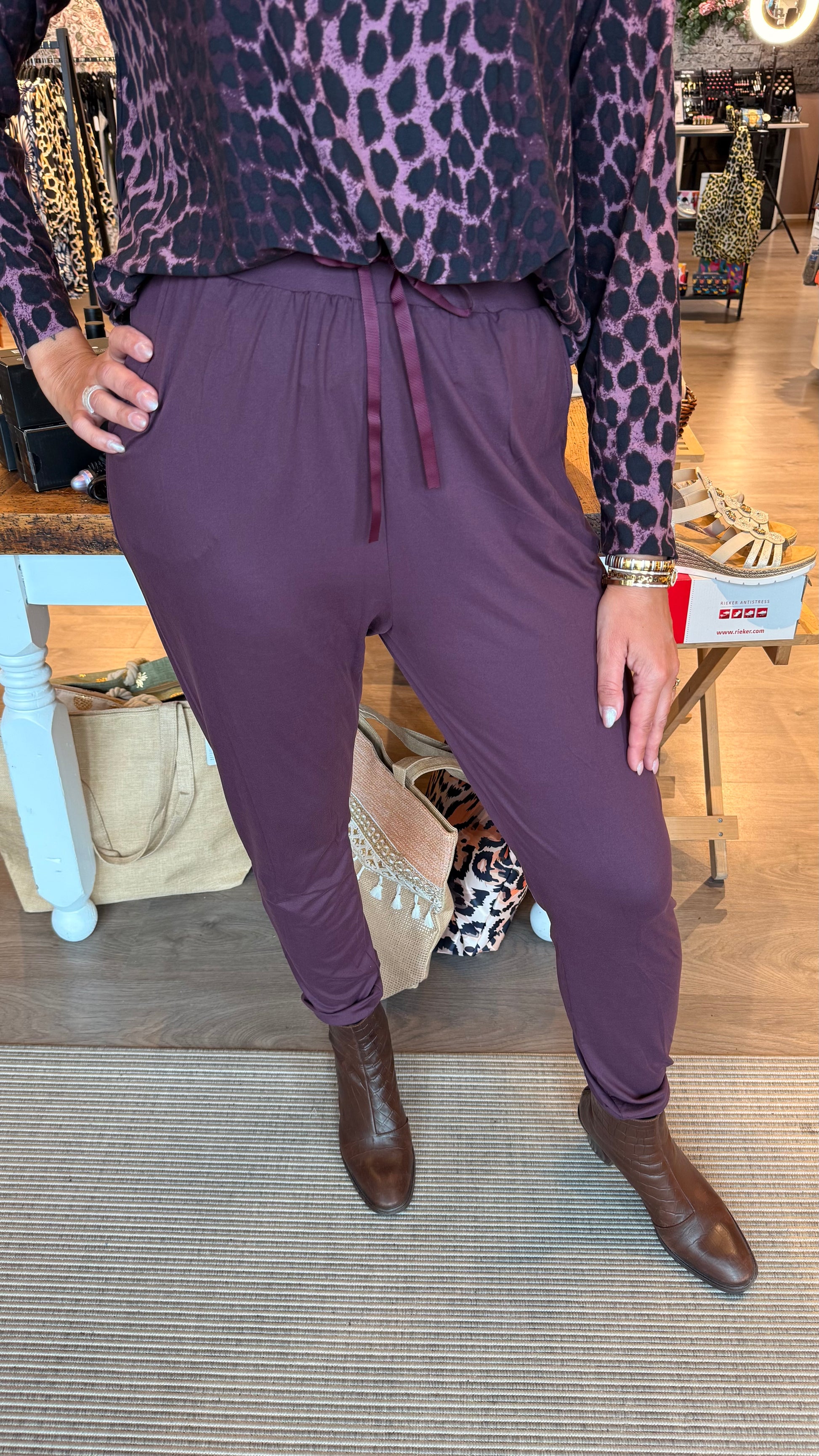 Dásamlega mjúkar og þægilegar buxur frá Liberté, Alma línan. Buxurnar eru með teygju í mitti og böndum einnig mjúkt stroff að neðan og vasar. Það er einnig til síðerma peysa í stíl.