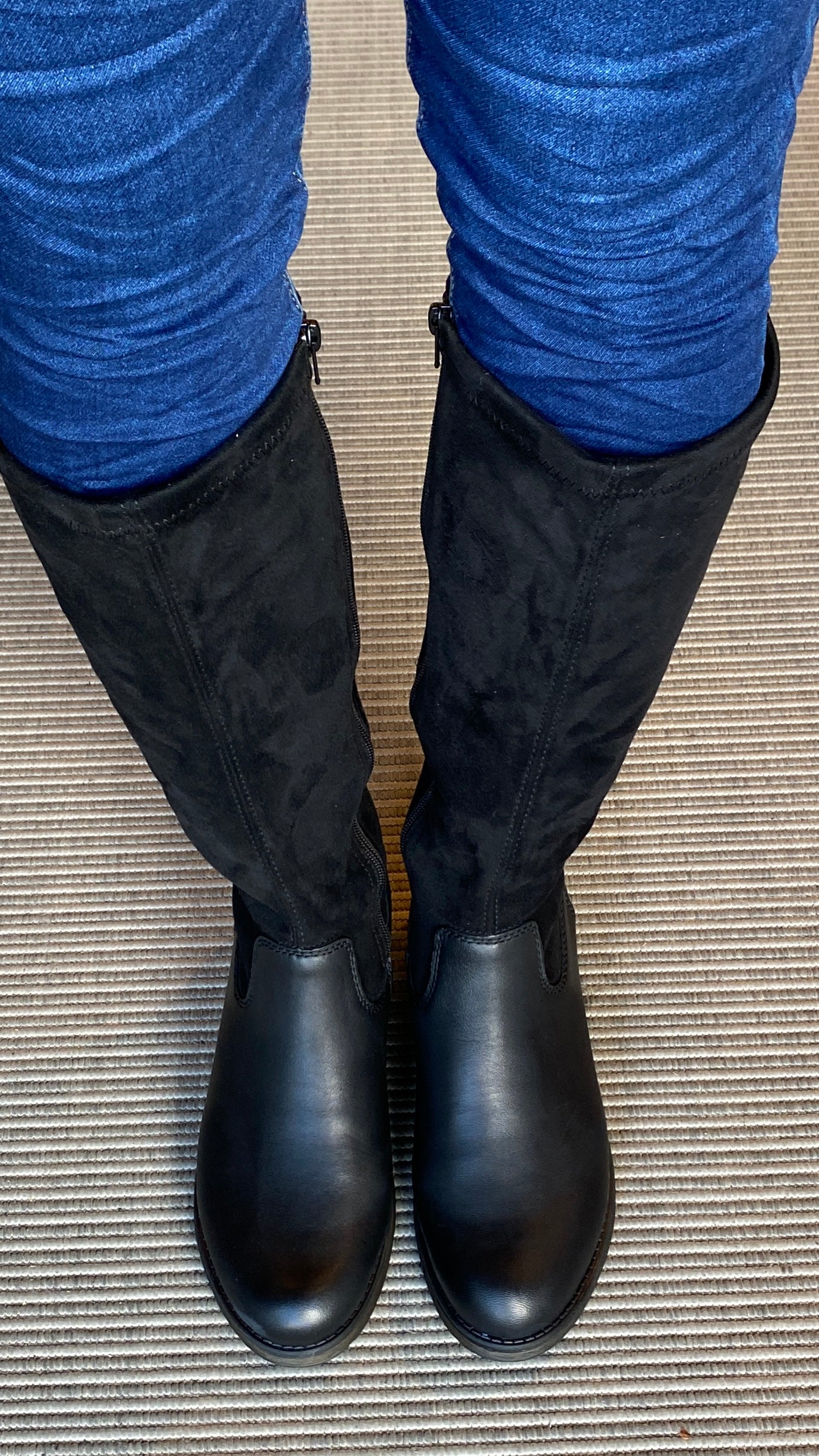 Smart og þægileg stígvél með teygjanlegu efni yfir kálfana og leður. Þessir skór henta konum með breiða kálfa.