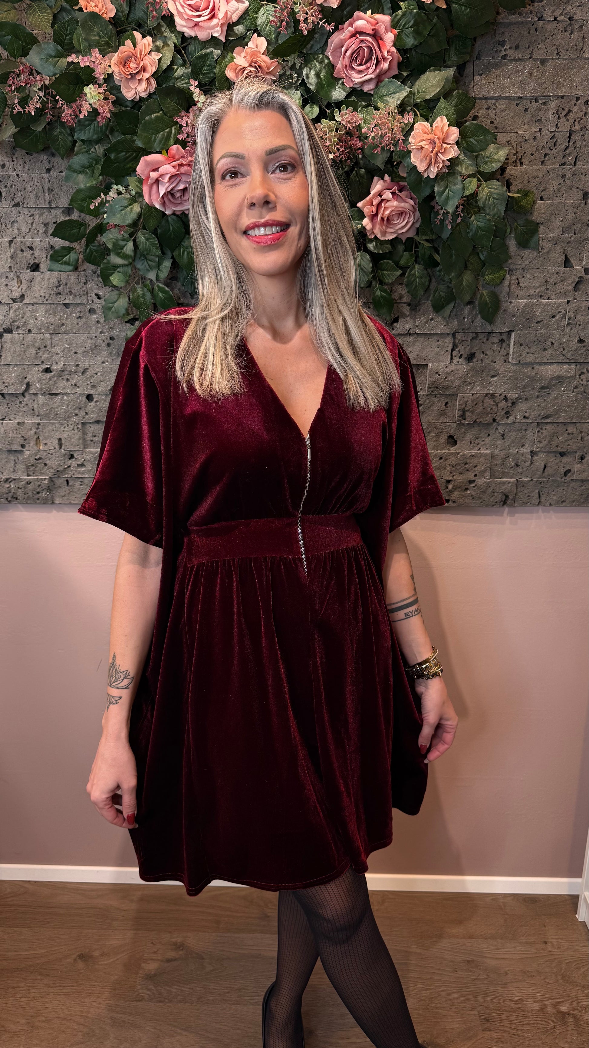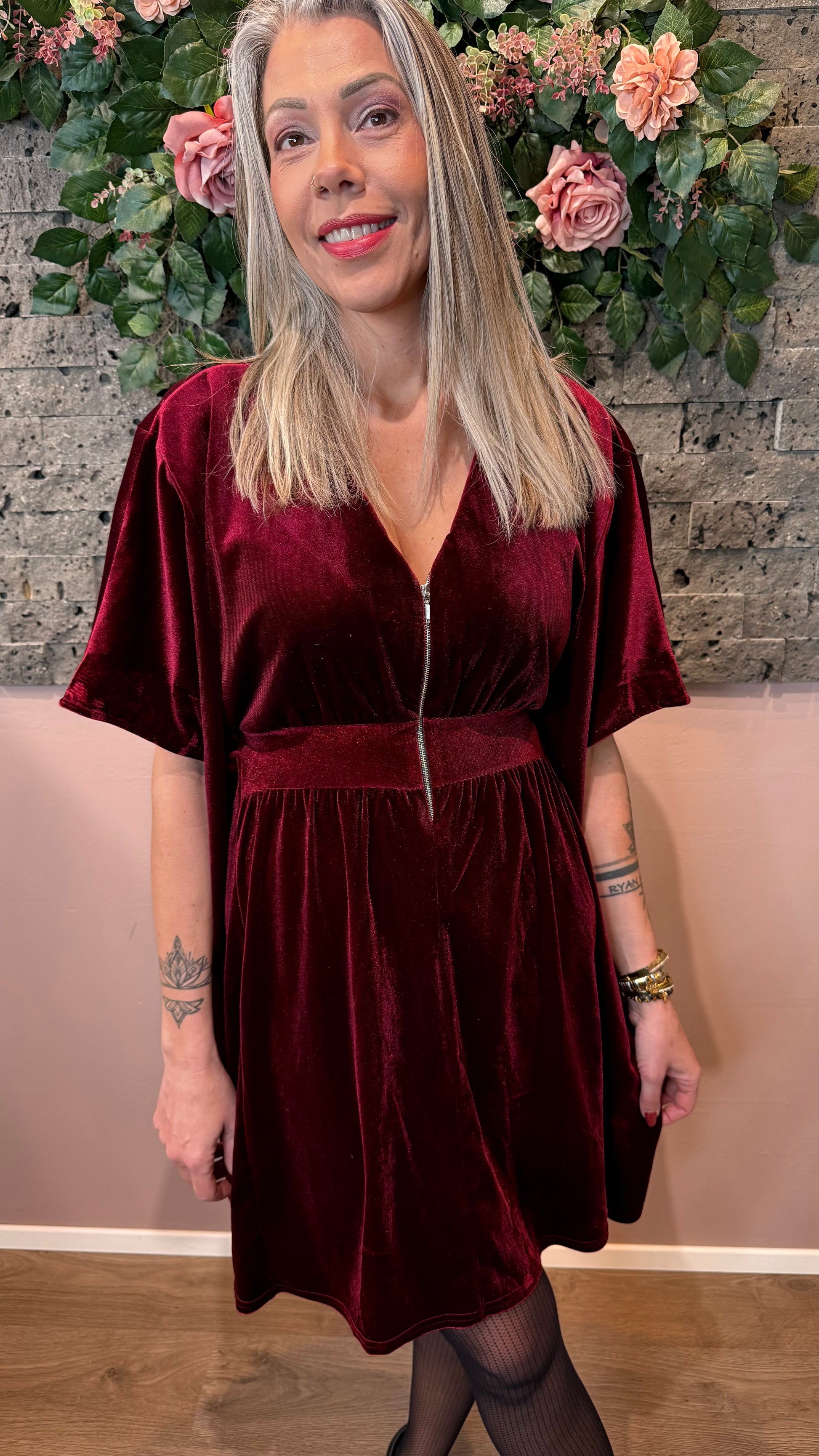 Mömmukjóllinn - vínrauður stuttur flauelis