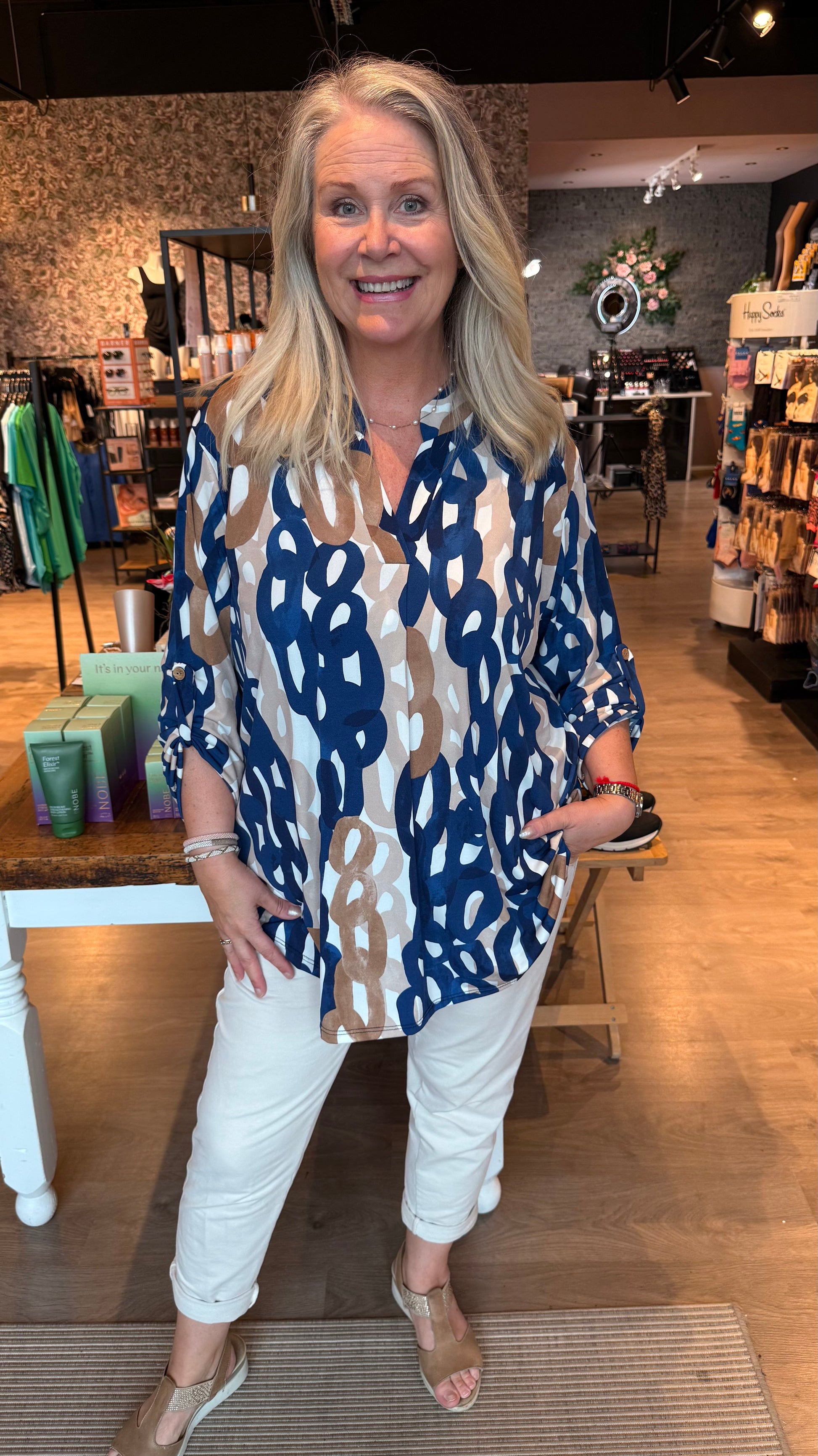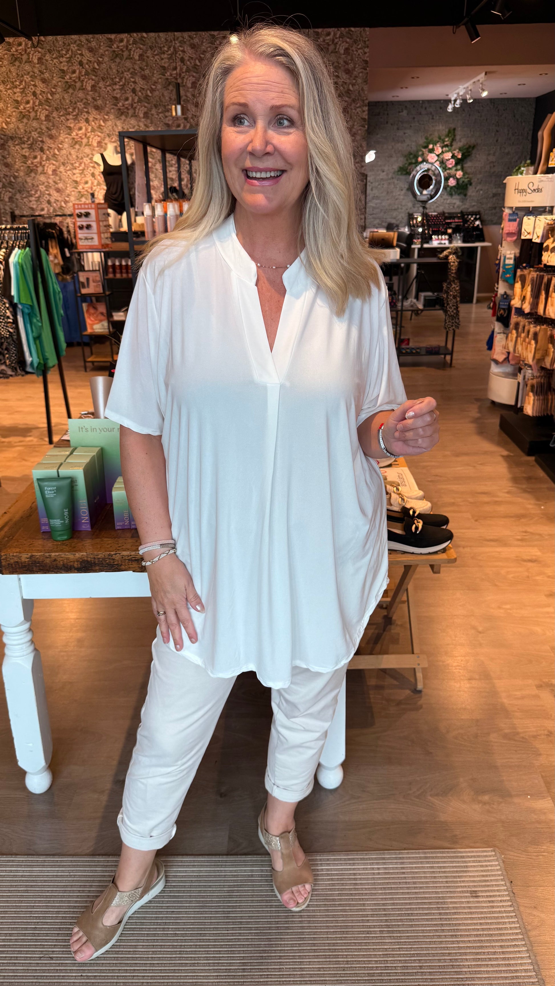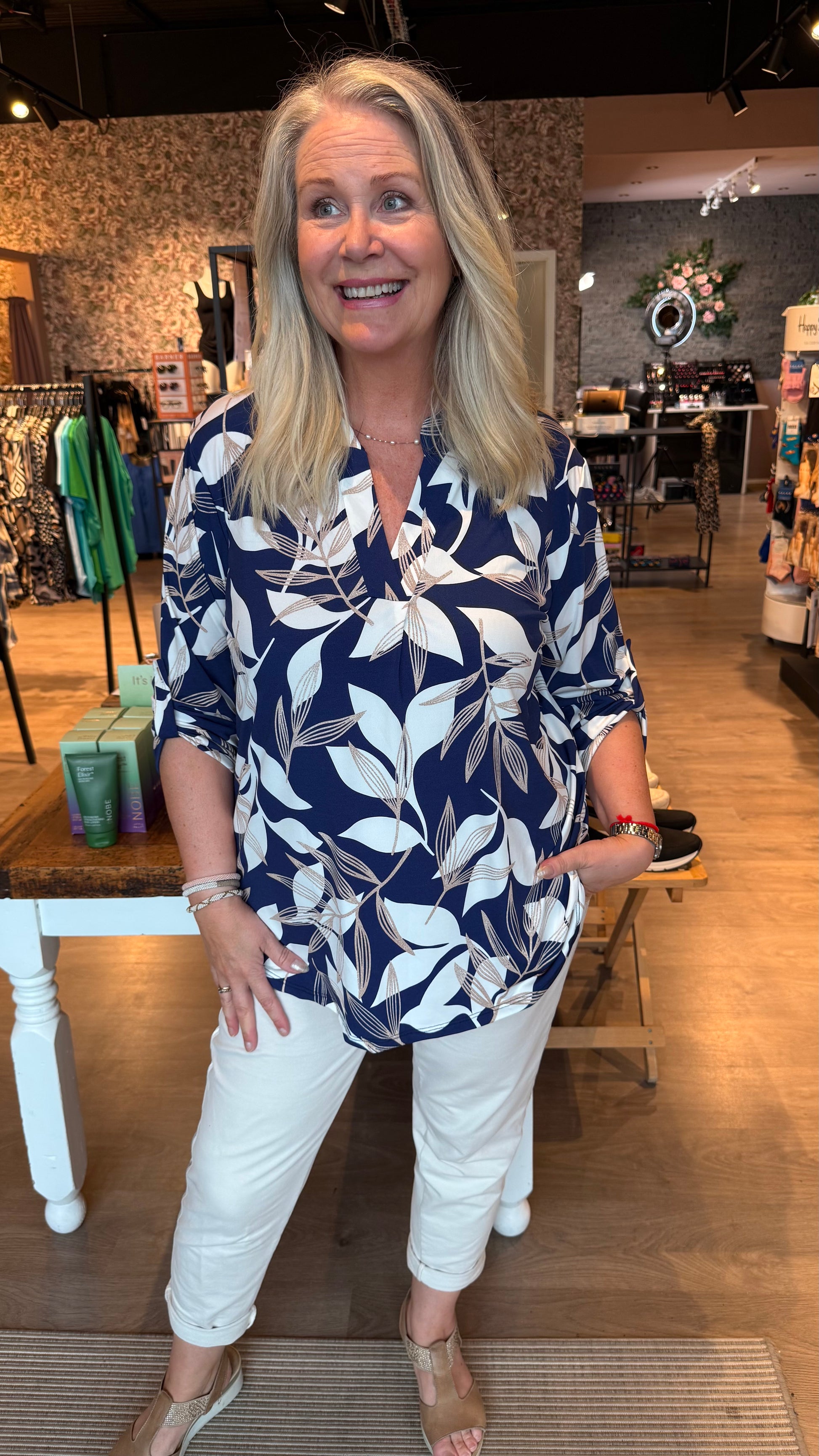 Klassíski og klæðilegi mæjubolurinn með kraga og með V hálsmáli. Bolurinn er með kvartermum. Léttur bolur úr góðu teygjanlegu efni og núna í stærri stærð en áður.
