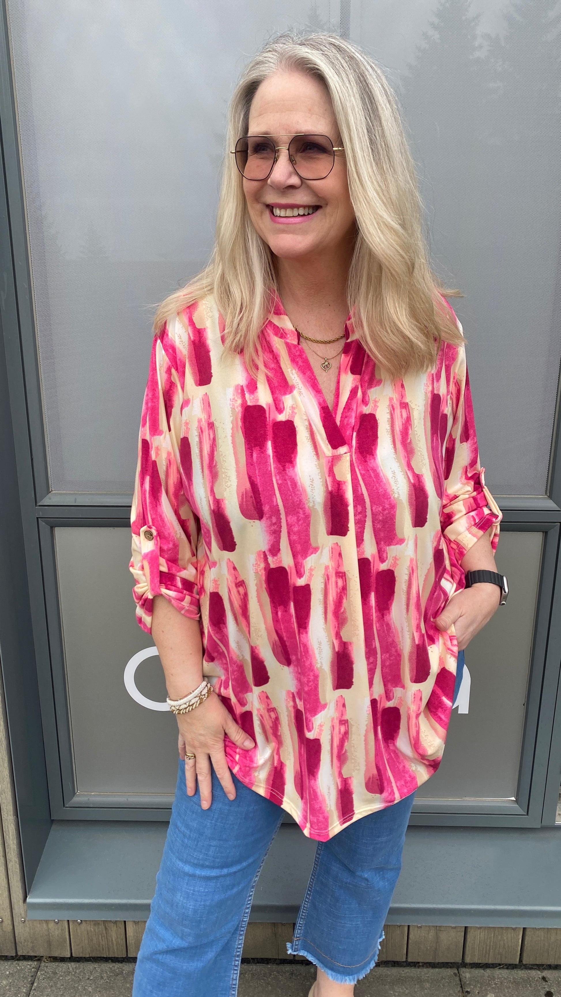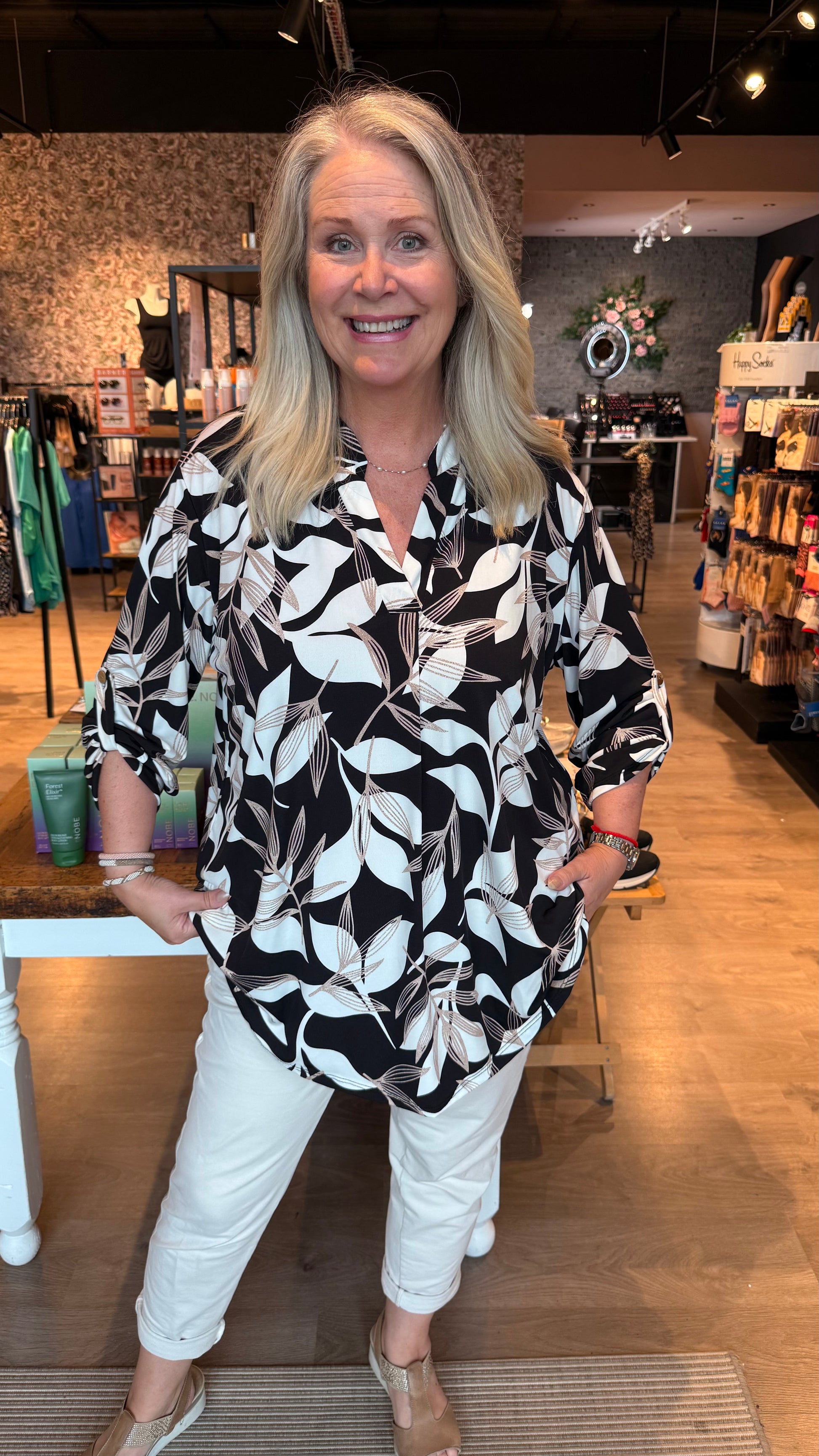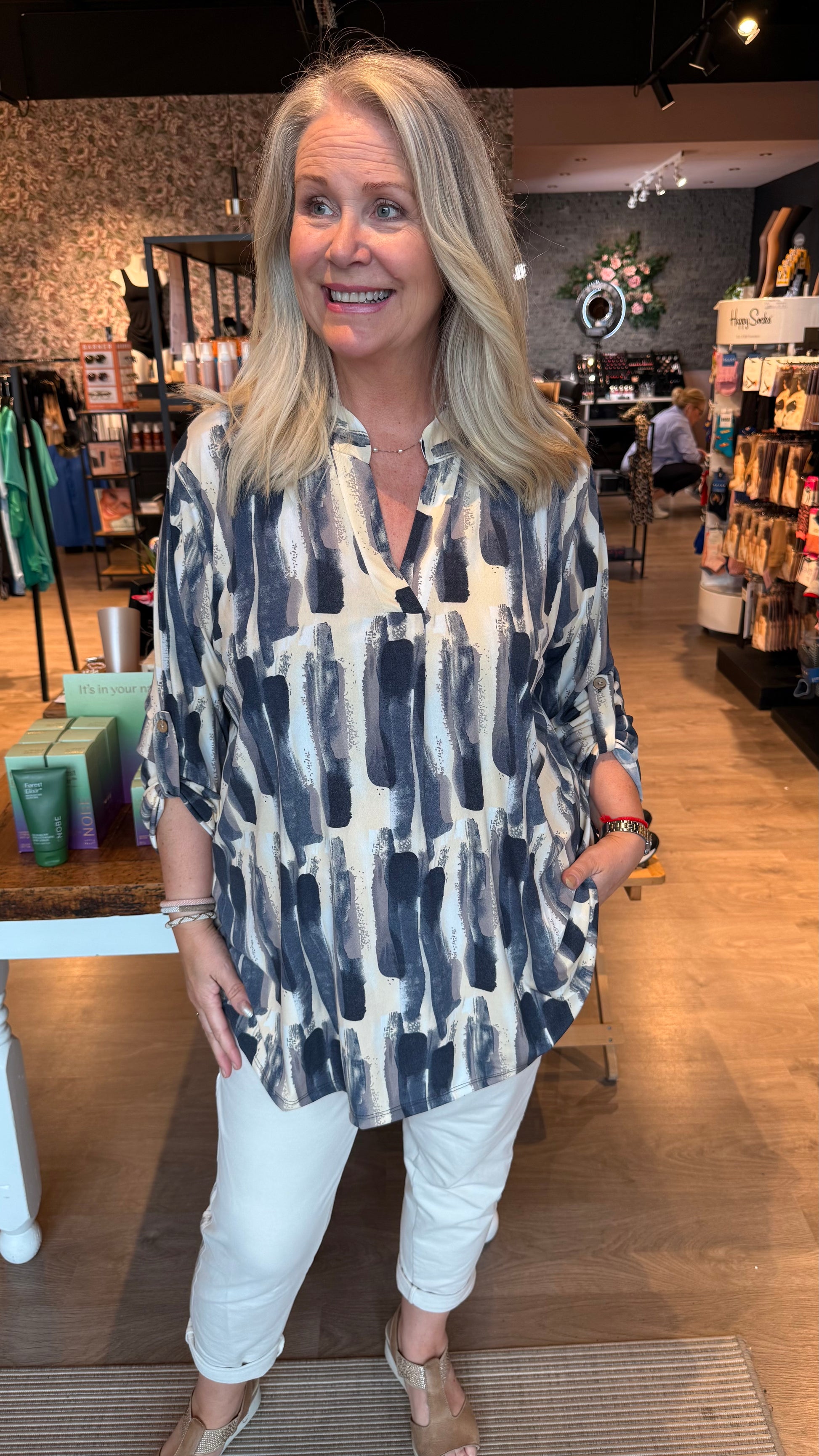 Klassíski og klæðilegi mæjubolurinn með kraga og með V hálsmáli. Bolurinn er með kvartermum. Léttur bolur úr góðu teygjanlegu efni og núna í stærri stærð en áður.