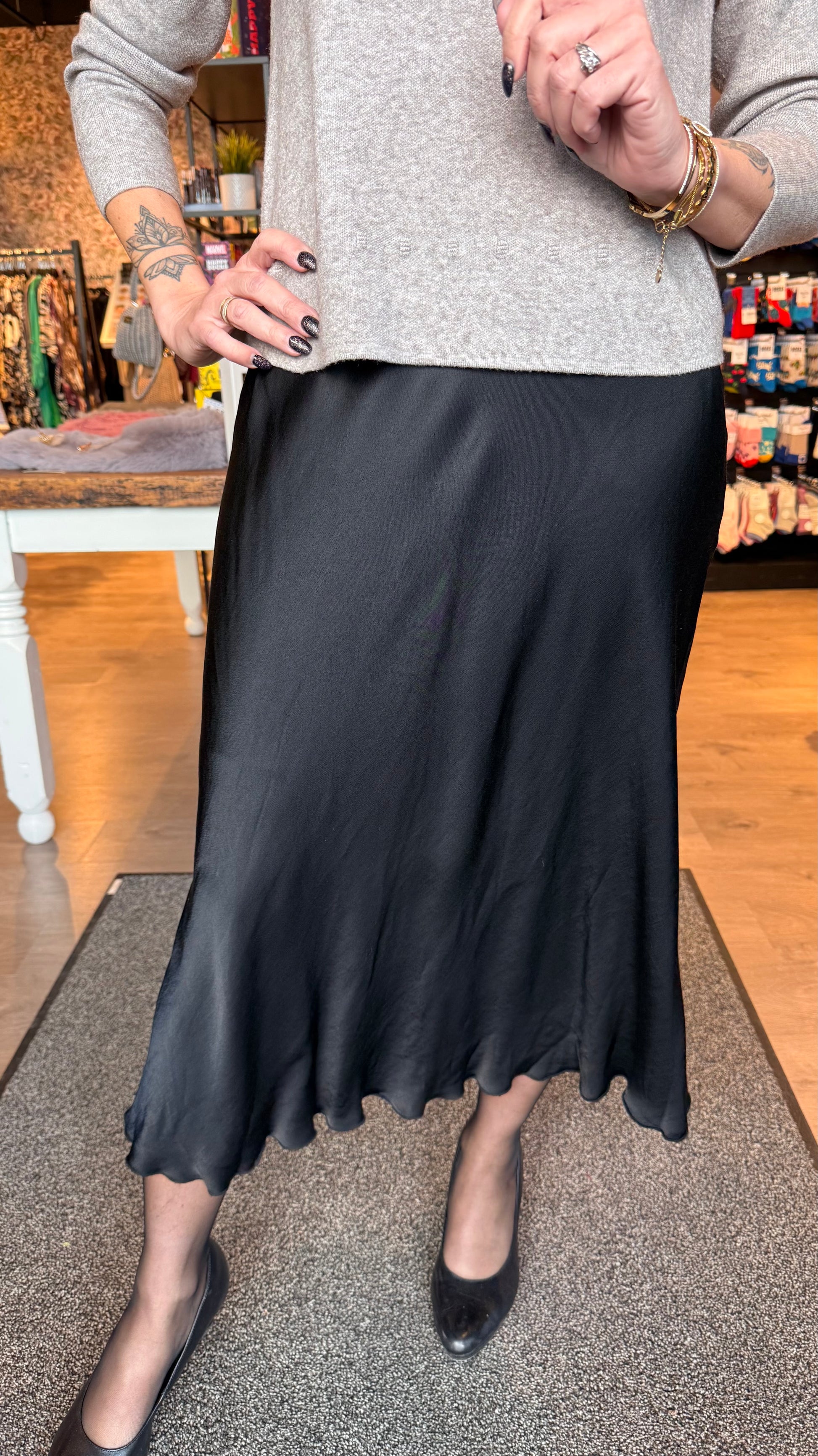 Sparilegt og fallegt satín pils með teygju í mittinu.