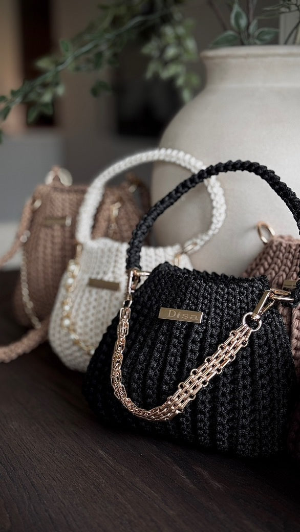 Hafdís Óskarsdóttir hannaði þessi fallegu veski sem fást eingöngu hjá okkur. Veskin eru handgerð og koma í ýmsum litum og gerðum. Eru með handfangi og einnig löngu bandi sem hægt er að nota á öxlunum.
