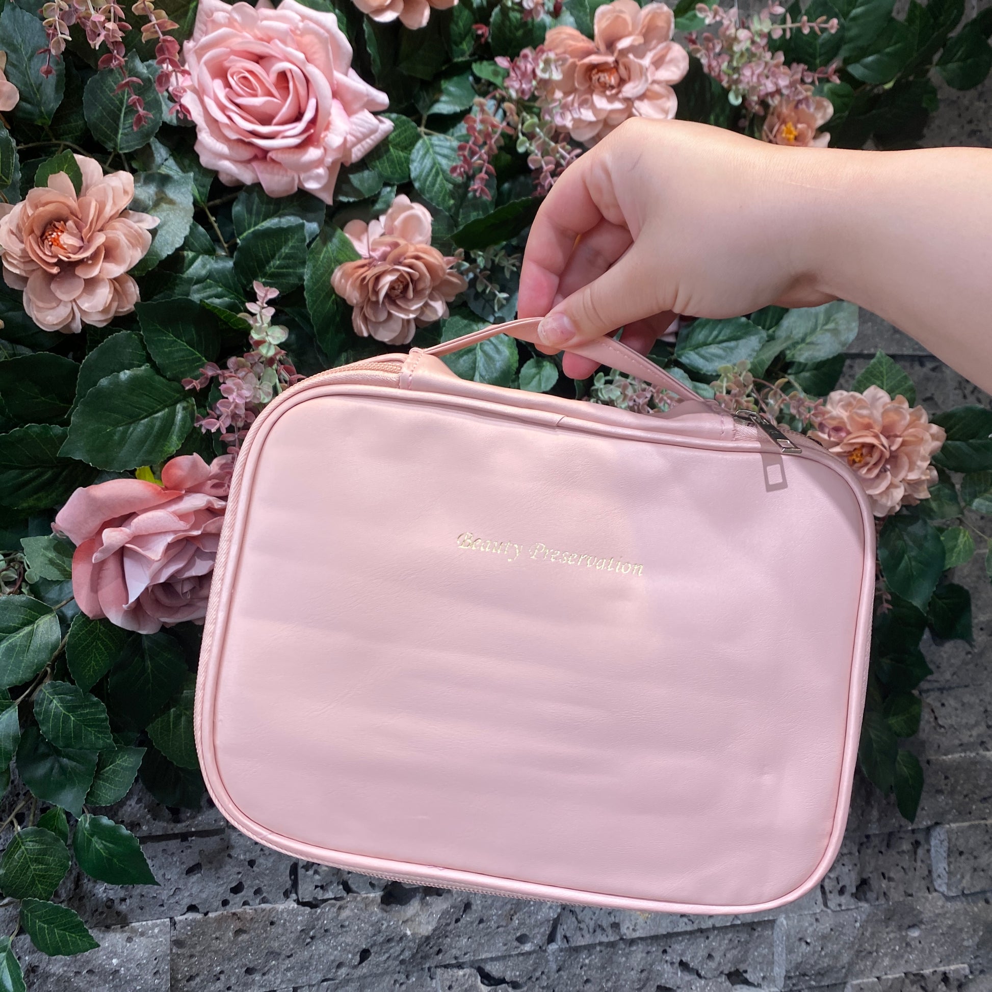 Glæsileg snyrti eða skipulagstaska sem hægt er að geyma bæði snyrtivörur og bursta. Taskan er vel hólfuð og rúmar bæði krem, förðunarvörur og förðunarbursta.