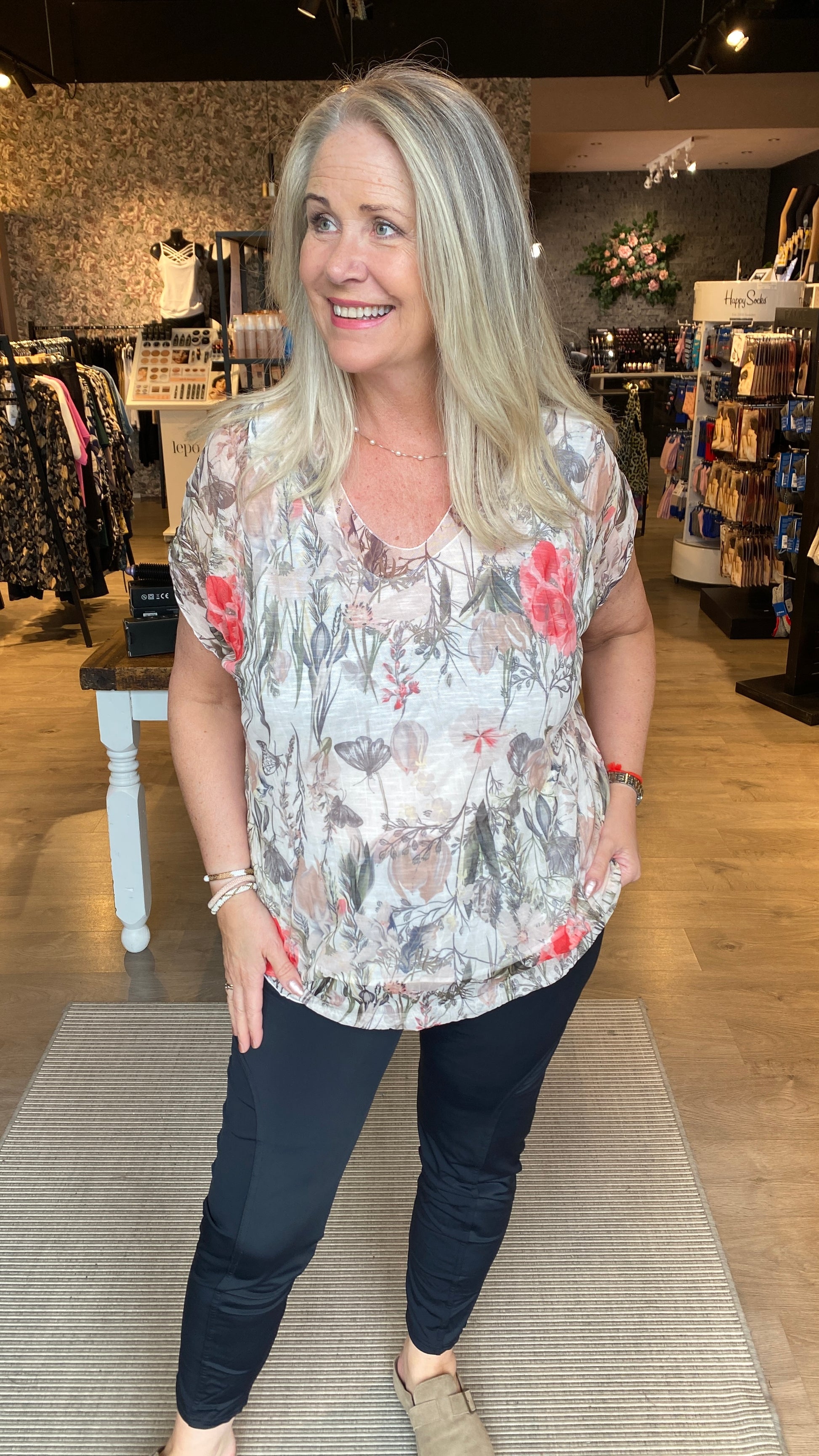 Efni 50% Viscose, 40% polyester og 5 % elastin í innanundir bolnum