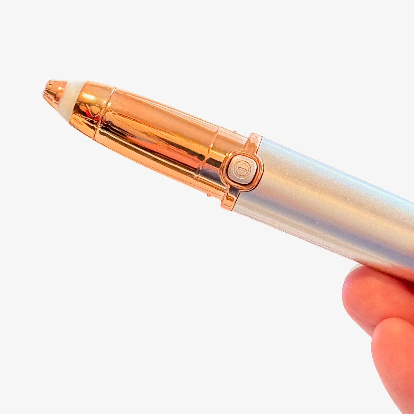 Einstaklega þægilegt tæki til að fjarlægja hár, bæði fínleg og gróf – sársaukalaust með öllu og tryggir fullkominn árangur. Særir ekki húðina eða veldur roða eða ertingu. Gengur fyrir rafhlöðu og er með led ljósi sem lýsir upp hárin til að auðvelda eyðingu. Tækið inniheldur fjölmarga örsmá hágæða Titanium blöð sem vinna á hárunum á gjörsamlega sársaukalegan máta.