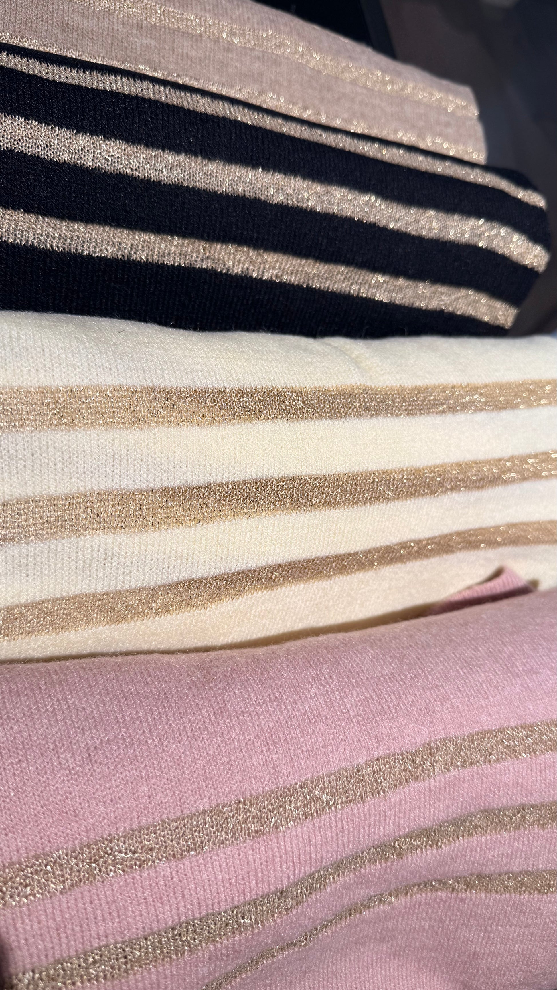 Mjúkur og fallegur trefill með gylltri rönd að neðan.